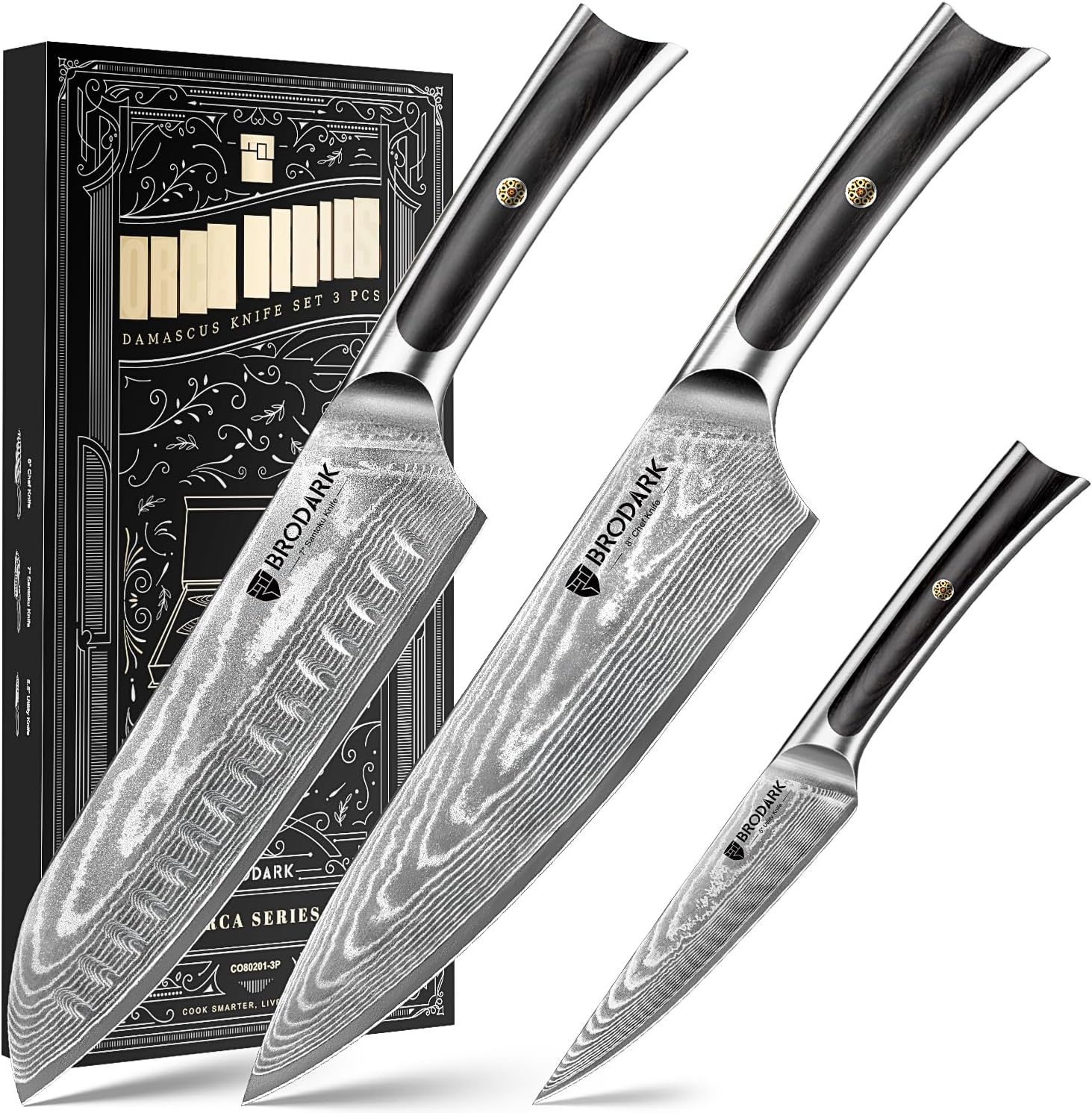 BRODARK Damascus Chef Knife Set 3PCS VG10 Steel